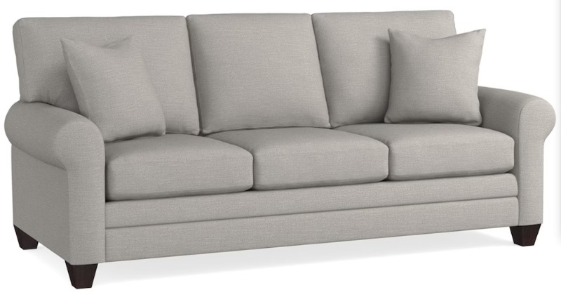 Moderately scaled domestic upholstery collection that features a choice of arm styles, a loose box back, top stitched seat cushions, and tapered legs. Optional nailhead trim and leg finishes are available in-store only.Read More