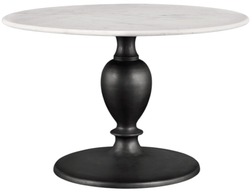 Your dining space might be the ideal place for this captivating mixed-material Coventry Round Dining Table. Available with either a 48” or 54” tabletop diameter, the Coventry features ½” thick solid Banswara marble anchored to a cast aluminum base in a textured, bronze finish. The table’s round shape and organic styling lends itself to gracious seating in almost any modern space, with the pedestal base leaving room to gather chairs around in easy comfort for all. The Coventry Collection also offers the opportunity to pair your show-stopping dining room table with an occasional table to successfully integrate your overall design plan.