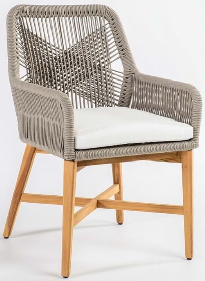 Woven with a textured, geometric design, this outdoor dining chair features neutral colorways and chic, contemporary aesthetic. This chair brightens any outdoor space with its natural wood legs, crisp and comfortable cushion, and dynamic woven design.Read More