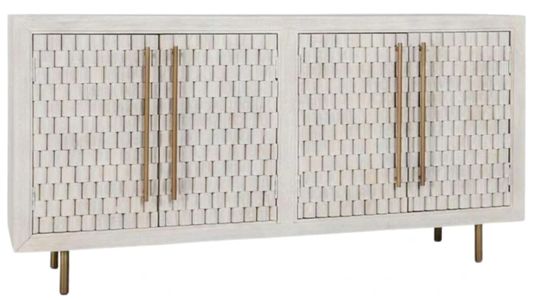 Made from hand carved mango wood, the Norwood 4Dr Sideboard accentuates any room's composition. Its rich bark-brown finish, paired with gold-finished iron pull handles and legs, complements neutral and monochromatic palettes effortlesslRead More