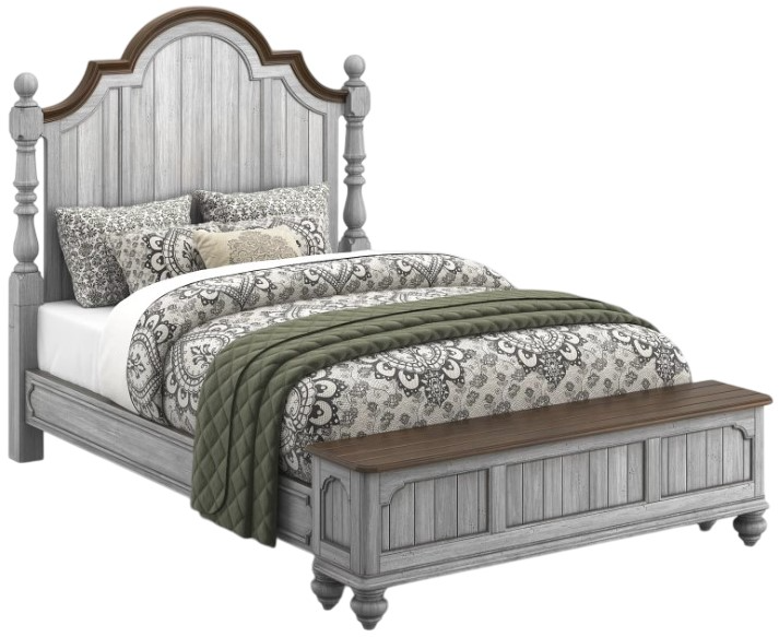 Shabby chic design with a bit of vintage. The Plymouth bed boasts a shabby chic design with contrasting wood finishes and paneled construction. With an overall graywash finish accented by dark trim, Plymouth is ideal for those who like a bit of vintage design in their modern lives.Read More