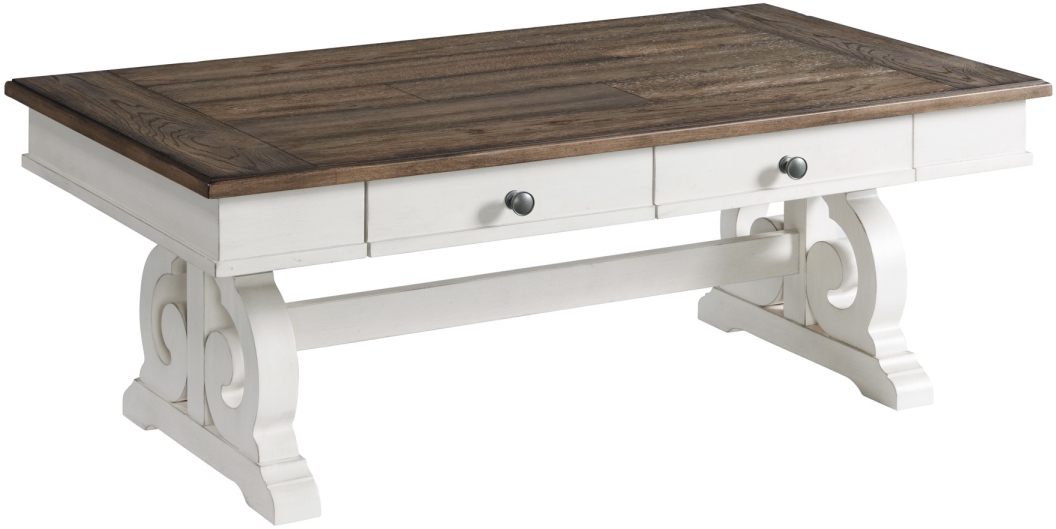 The Drake living room collection comes in a beautiful two-toned rustic white and french oak finish. This unique collection also features an antique harp style base on tables, constructed from rustic knotty oak veneer and select hardwood.Read More