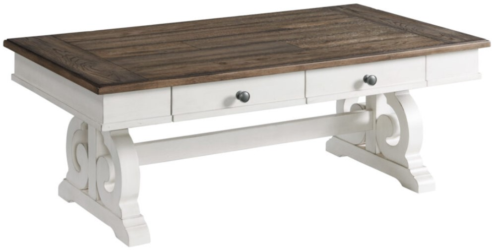 The Drake dining collection comes in a beautiful two-toned rustic white and French oak finish. This unique collection also features an antique harp-style base on tables, constructed from rustic knotty oak veneer and select hardwood.Read More