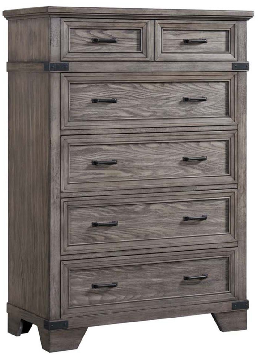The Forge Bedroom Collection features Oak Veneer and Select Hardwood constructions in a wire-brushed steel gray finish. With detailed metal accents and hefty hardware, this trendy gray bedroom set will add diverse style to any bedroom.Read More