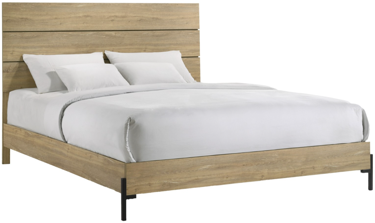 The modern Newhall melamine bedroom group features a perfect balance of clean lines, chic styling and practicality. The group features a light vintage oak melamine with metal legs and wide drawer pulls with a dark burnished black finish.Read More