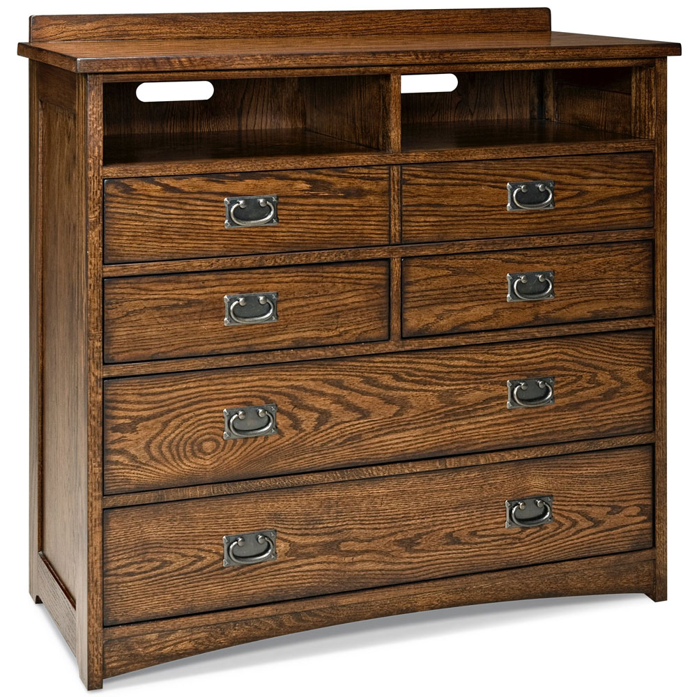 Constructed from solid oak in mission finish. Drawers are solid cedar, full extension with solid oak drawer fronts. Combo power pack with HDMI in drop down drawer of media chest. Accented English dovetail drawer construction for lasting durability. Authentic arts and crafts hardware.Read More