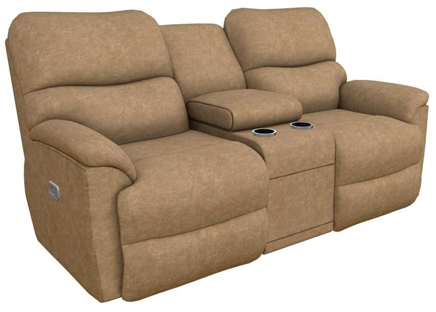 The Trouper power reclining loveseat w/ headrest, and lumbar & console has smooth curves and simple lines that complement a richly cushioned profile. Plush blown-fiber split backs offer cozy support. Sculpted bucket chaise seats and legrests adjust to create generous spans for stretching out.Read More