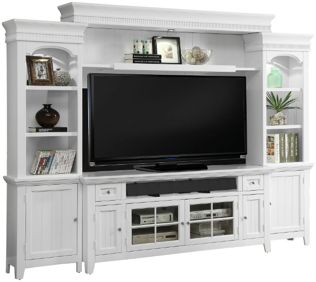 From the first moment you see it, the 72-inch console entertainment wall from the Tidewater collection is destined to become a must-have. Perfect for displaying your media and electronics, the ensemble features glass shelves, ventilation, cord management, and a sound bar opening.Read More