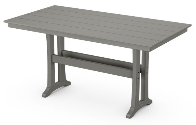 Farmhouse Trestle Grey 37" x 72" Counter Table combines function with contemporary style and pairs perfectly with the Riviera Modern Lounge Collection. This sleek coffee table will provide the perfect spot to rest your drink and snacks as you relax the night away. This durable, all-weather coffee table will complement your contemporary outdoor space.Read More