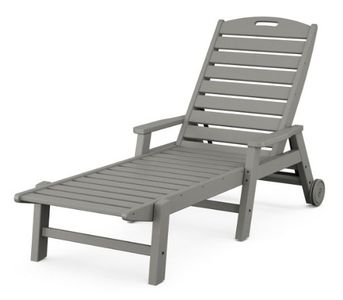 Chaise features wheels on back legs for easy relocation