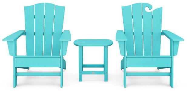 The Wave 3-Piece Adirondack Chair Set pays homage to our beautiful oceans. This weather-resistant set features a complimentary side table and two chairs with contoured seats and a back design that represents a cresting wave.Read More