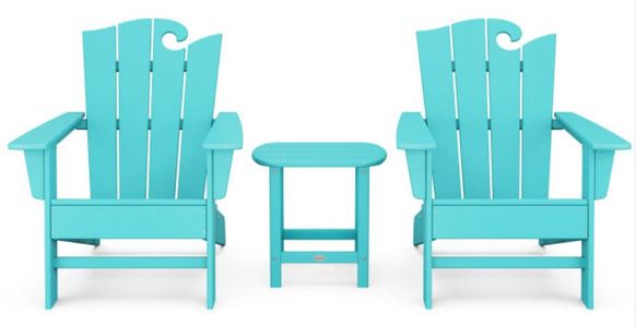 The Wave 3-Piece Adirondack Set with The Ocean Chair design pays homage to our beautiful oceans. The Adirondack chairs in this set feature contoured seats and the tops of the backrests are styled to represent a cresting wave while the complementing side table is the perfect place to set drinks and a snack.Read More