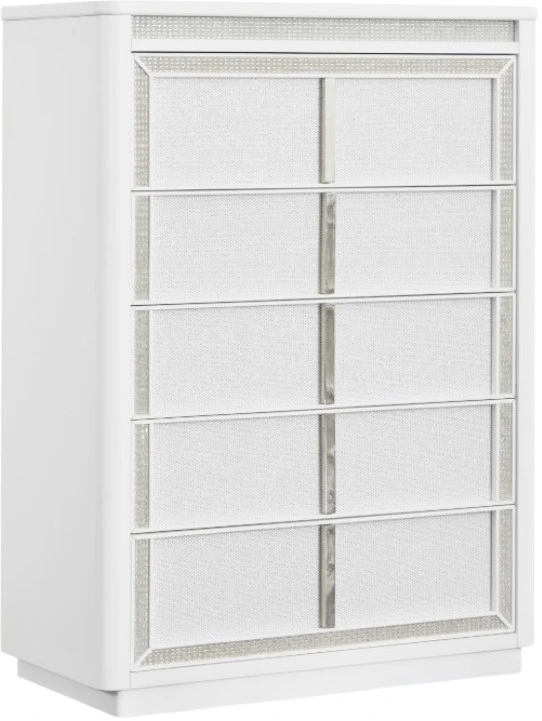 Transform your bedroom with this Chalanna chest of drawers. Its modern design and glamorous details create a sophisticated retreat. The built-in LED lighting and rhinestone-framed drawers add style and practical storage. Let your sanctuary shine—and never let anyone dull your sparkle.Read More