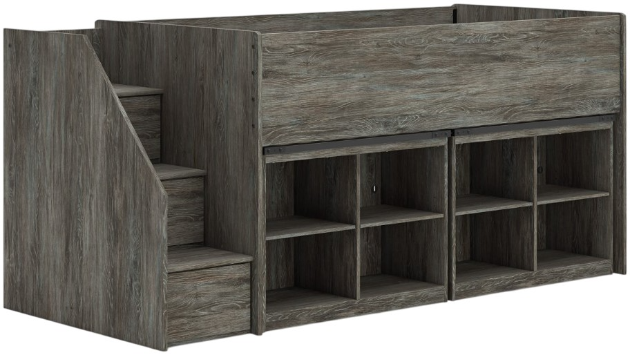 Cool, casual style is for all ages. With this twin loft bed with bookcase storage, they get the function they need plus the refined design you love. Approachably neutral in a rustic warm gray, it’s adaptable enough to pair with an assortment of existing colors and room decor.Read More