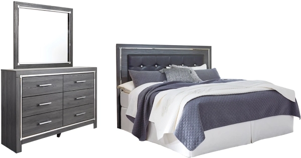 Includes headboard and 6-drawer dresser with mirror