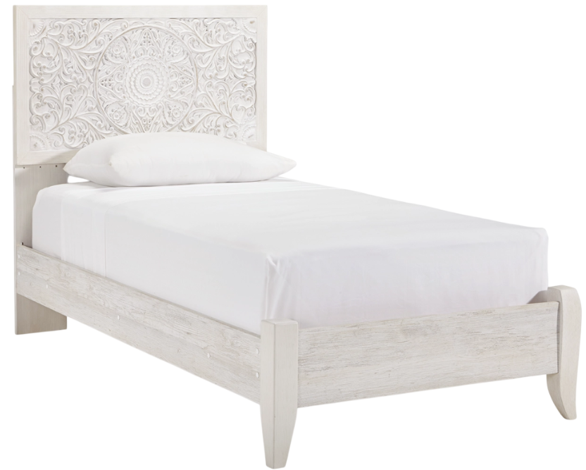 Your young trendsetter can live out her free spirit with this twin bed. Exquisite carved medallion pattern is a testament to true style. Charming whitewashed finish sets a foundation for a room bursting with personality. Headboard's adjustable height design offers added flexibility.Read More