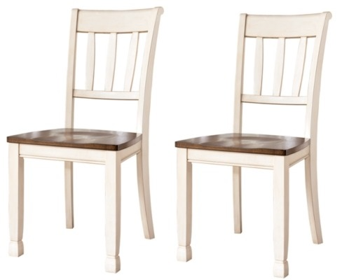 Incorporate cottage-cool warmth in your dining space with this dining room side chair in a classic rake-back design. A two-tone finish, chair seat is finished in a burnished brown color and chair frame is in cottage white which serves up twice the charm and character.