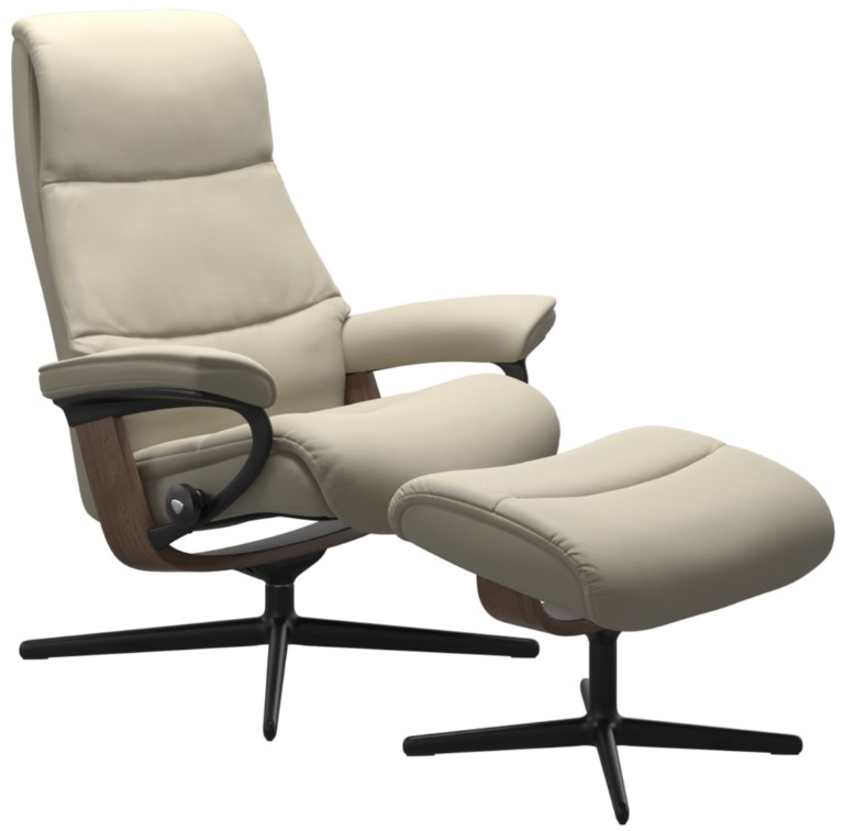 Soft and timeless. The Stressless View has ample cushioning, while retaining a timeless and modern cushion design with sleek contours. Fitted with a longer and slimmer back this recliner is great for those of us who need some extra length in the back.Read More
