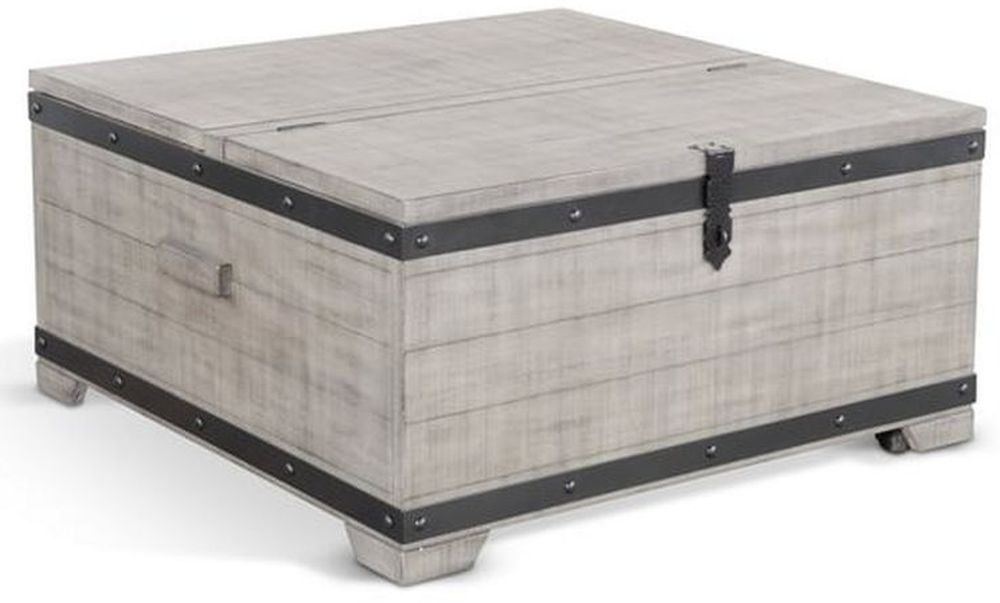 The Alpine Grey occasional collection features distressed mahogany with slated panel sides. The added metal details add an industrial touch. This coffe table will definitely add style to your room.Read More