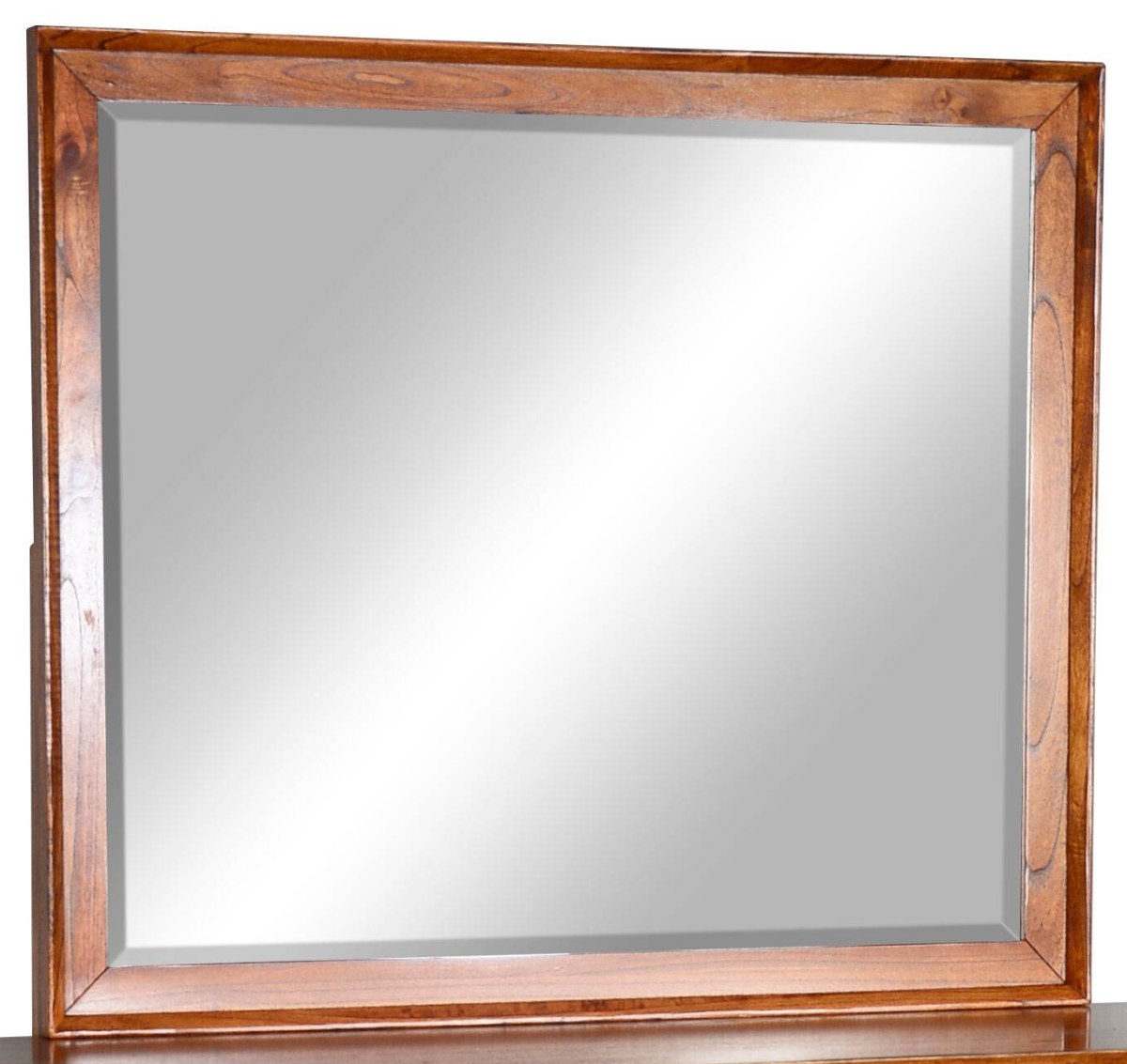 American Modern dresser mirror is made out of mindi solids and veneers. Cinnamon finish and hand applied glaze finish.