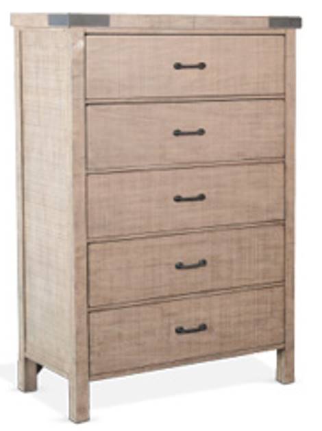 This chest features clean lines and a mixed-material look that combines modern style with industrial flair. Its frame is made from mahogany solids and veneers with metal corner accents and industrial style hardware.With five large drawers, you will have plenty of room for all your clothes.Read More