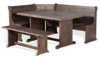 Set includes: Long Bench & Corner Back, Short Bench & Corner Seat, Side Bench and Table