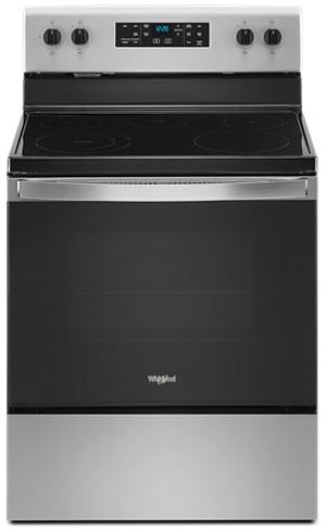 This Whirlpool® electric range with a dual element stove top resists fingerprints and helps you get dinner to the table. Skip preheating for favorites like pizza with Frozen Bake™ technology. This self cleaning oven also prevents cooked food from getting cold with a Warm Zone on the cooktop and the Keep Warm setting in the oven..Read More