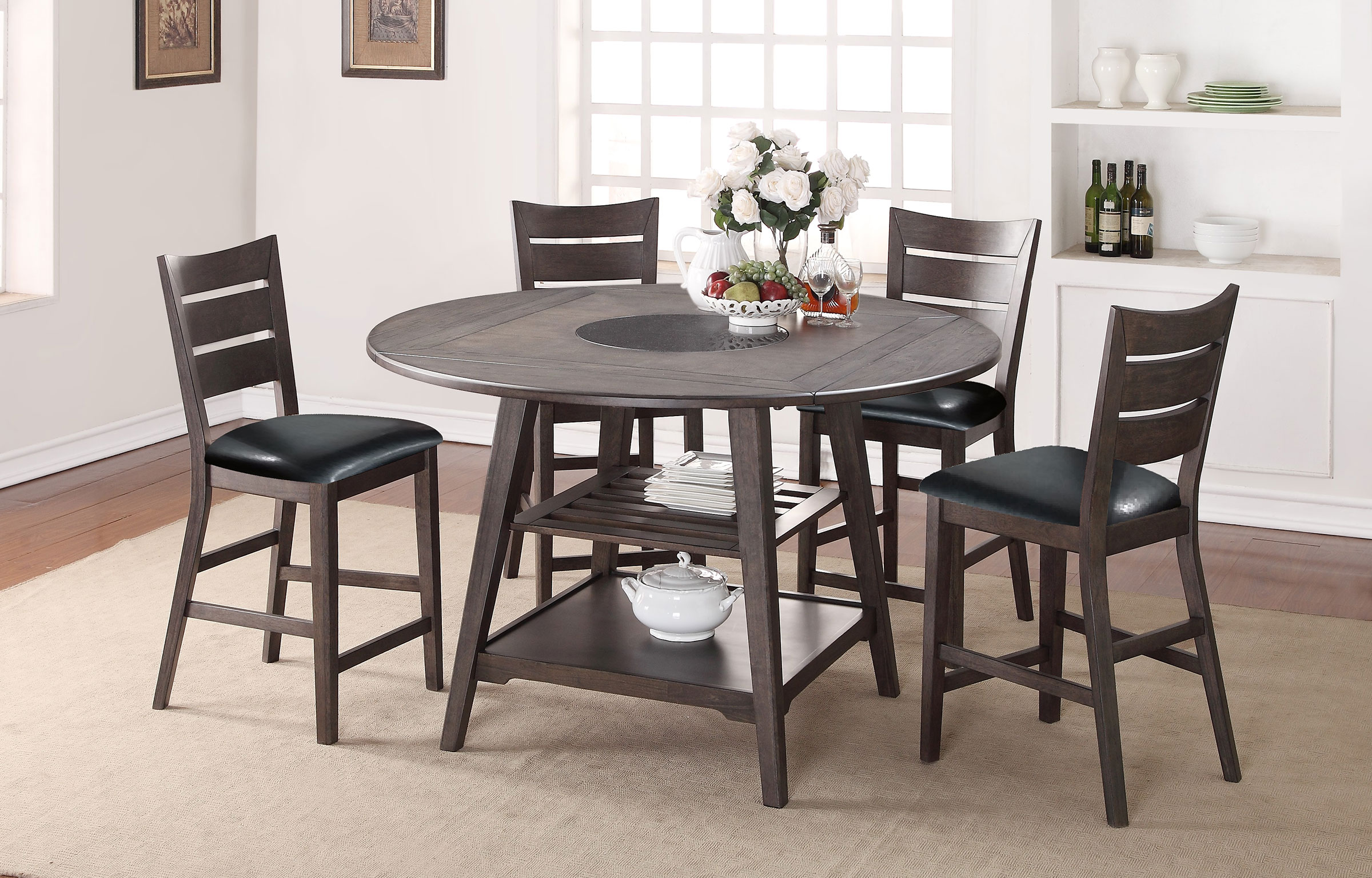 Winners Only® Parkside Round Table with drop leaves and 2 open shelves.Read More