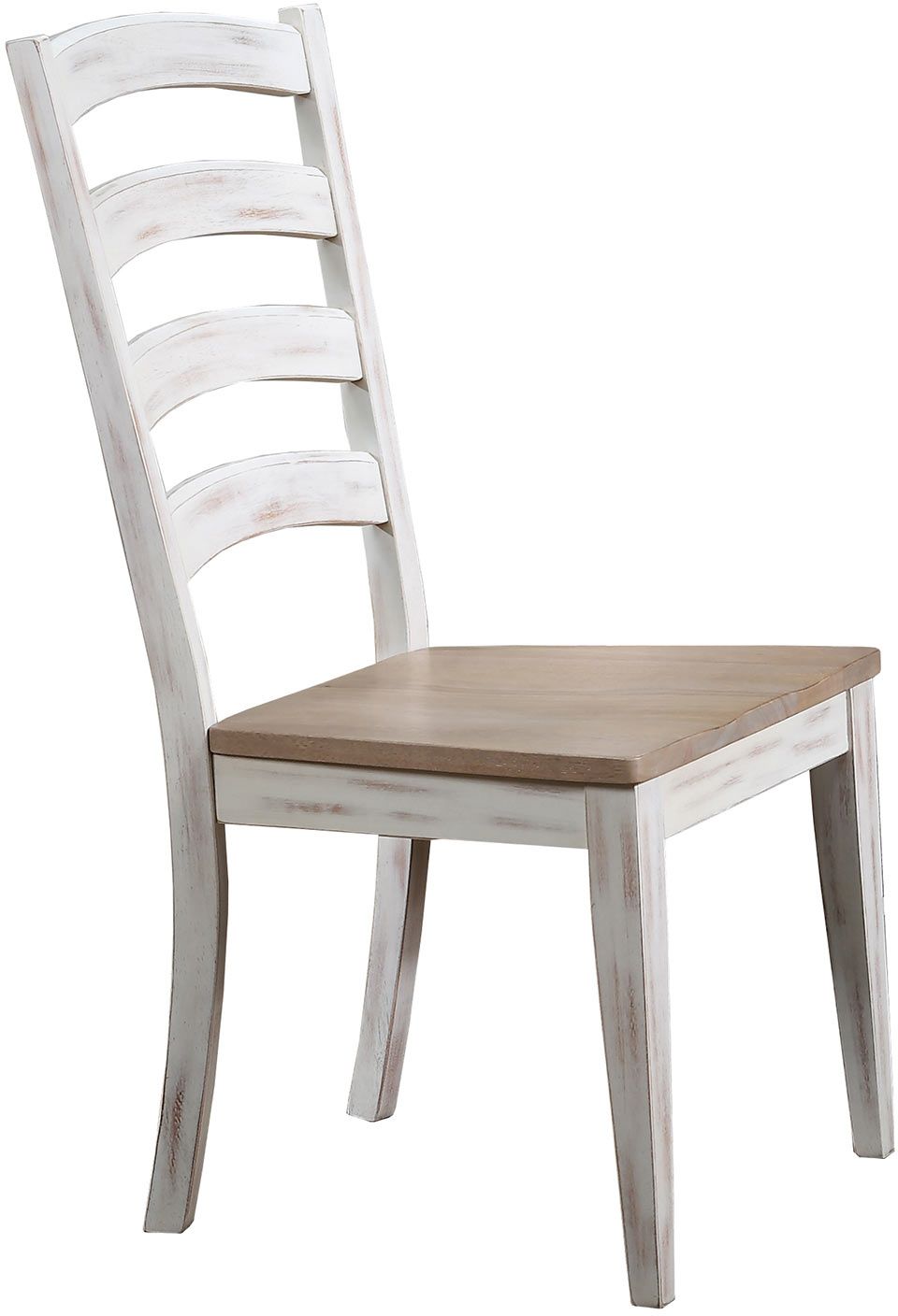 The Winners Only® Prescott Arched Ladder Back Side Chair is built out of solid hardwood and features a burlap and distressed white finish.