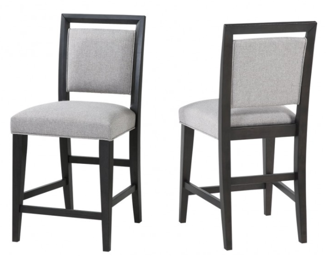 The set of two barstools feature well-dressed upholstery in Menswear Gray as well as strong charcoal oak veneer, engineered wood, and solid hardwood.Read More